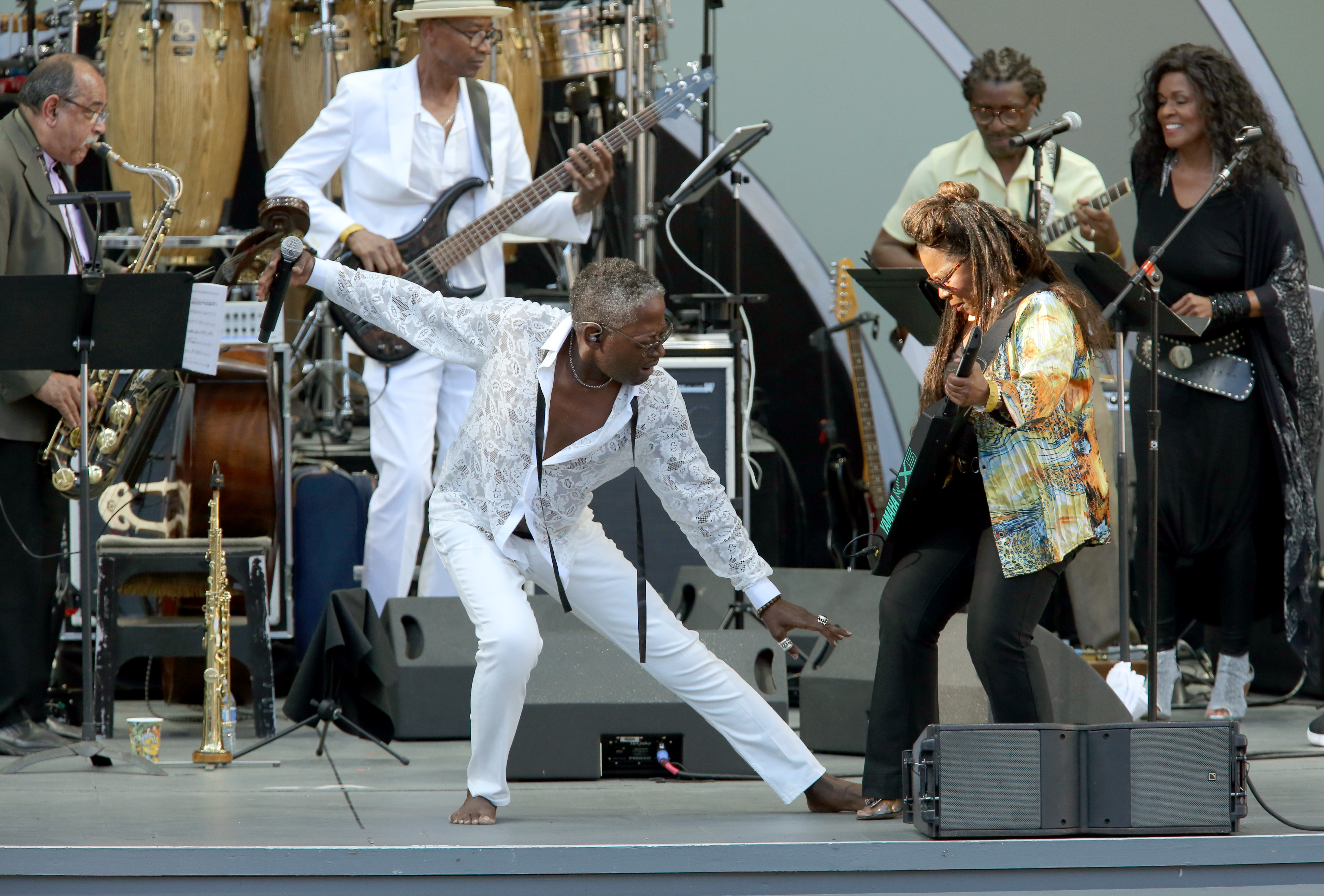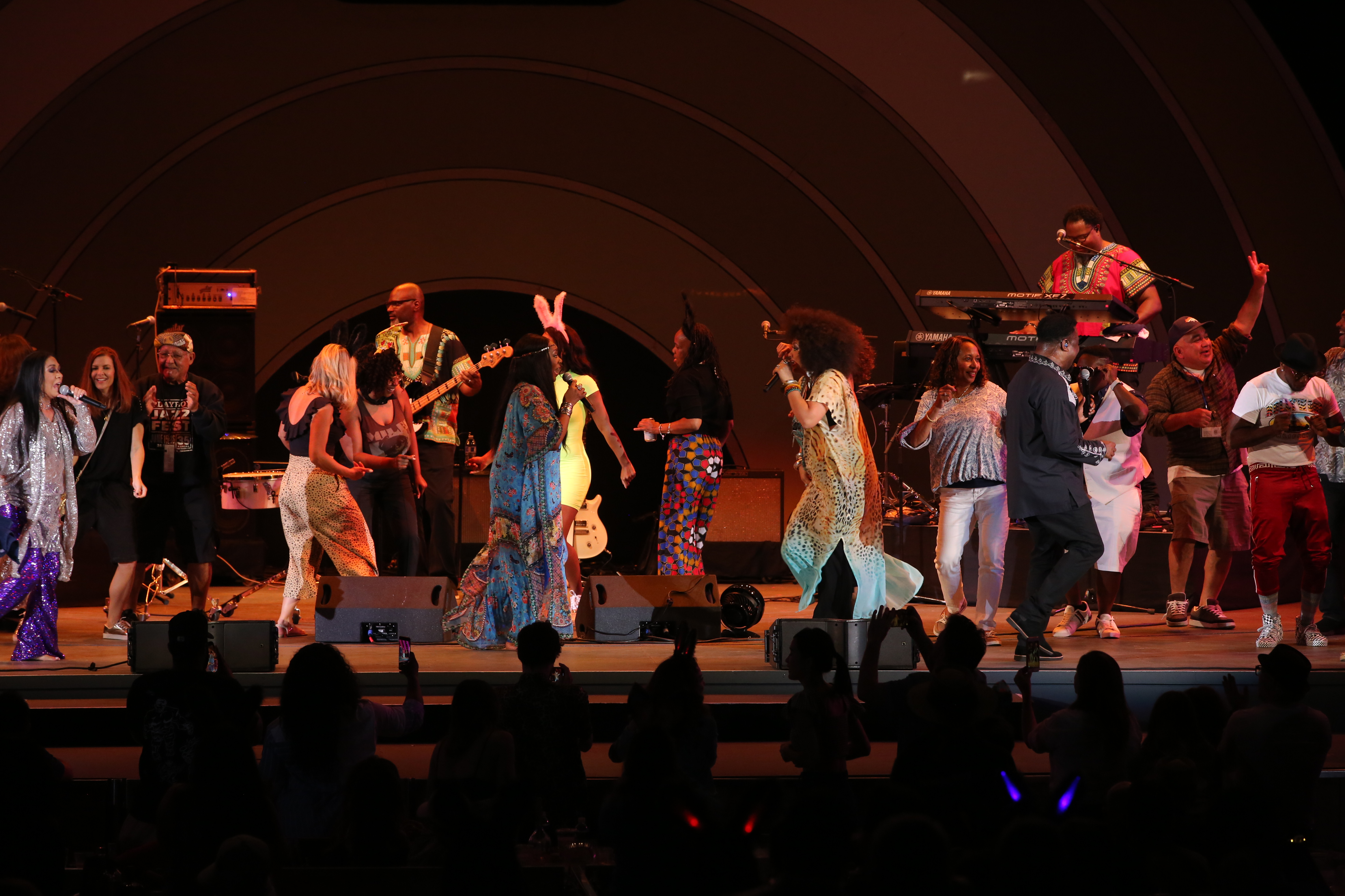 Sometimes it was a nostalgic funk dance party, like with Kool & The Gang celebrating their 50th year anniversary with their first festival appearance, closing the night with an extended singalong “Celebration” of always welcome classics (with “Jungle Boogie” particularly off the chain!) that truly embody the meaning of “Hollywood Swinging.” At other junctures, the performers connected us meaningfully with recently departed legends, first with an all-star crew of jazz/funk greats (Patrice Rushen, Ernie Watts, Doc Powell, Alphonso Johnson, Teri Lyne Carrington) paying buoyant homage to influential jazz fusion/pop/funk/soul drummer Ndugu Chancler via everything from “Let It Whip” (a Chancler co-write) and “Billie Jean” to George Duke’s trippy, otherworldly classic “Reach For It.”