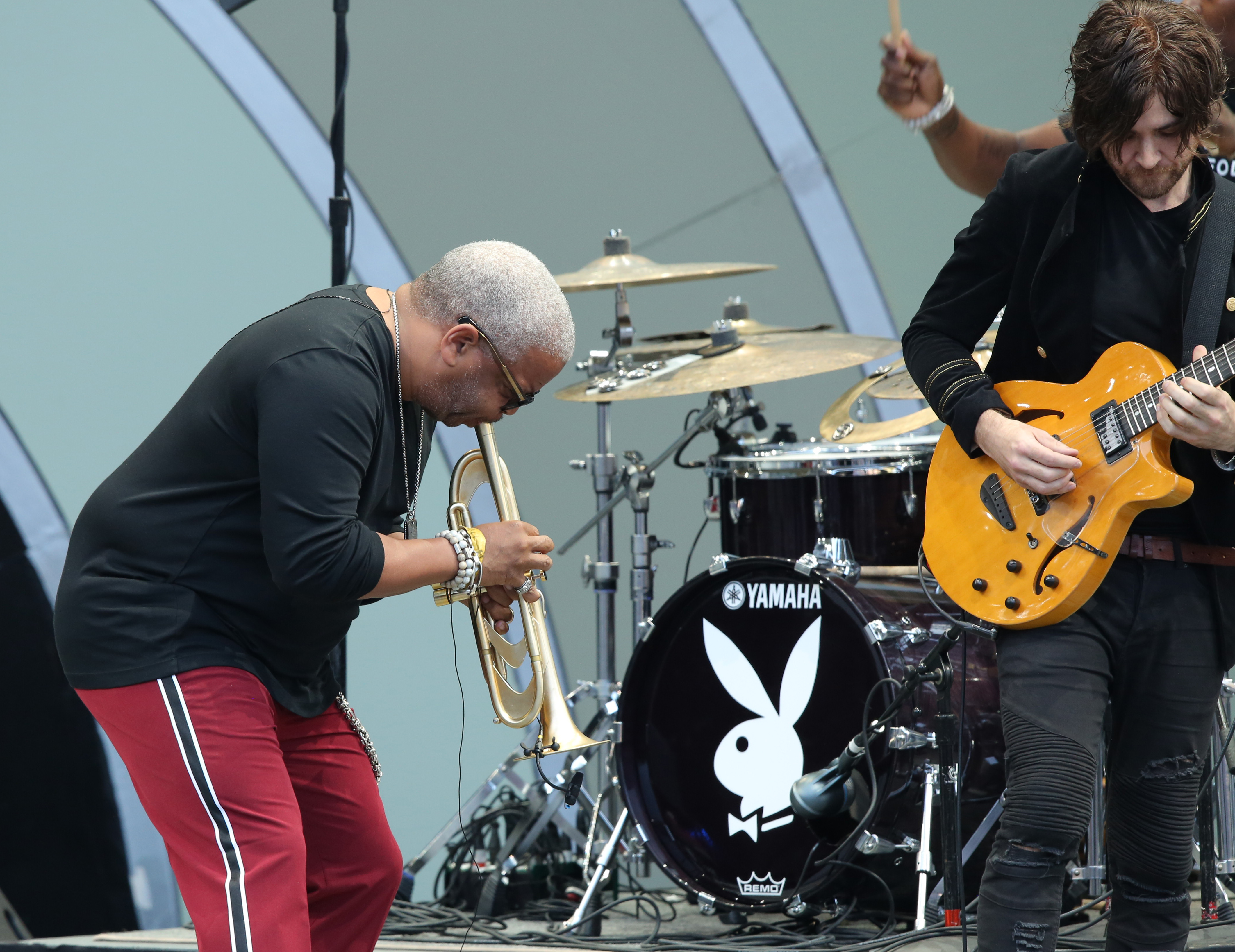 I tend to feel bad for the purists of any specific kind of jazz who think the term only applies to the sub-style they like. Playboy is one of those grand events that shows us just how broad the term is. On this sweltering afternoon, it was the intensely funky sister power of the all-female urban jazz collective Jazz in Pink, led by versatile (and highly mobile) keyboardist Gail Jhonson and featuring heavens-reaching violinist Karen Briggs and dreamy harpist Mariea Antoinette – rolling through everything from “Pusherman” to the autobiographical “I’m Every Woman.” It was also multi-instrumentalist (sax, keys, vocoder) Terrace Martin’s experimental old school soul jazz/electronic fusion. Jazz was the gleefully swinging, deeply soulful bridge from past to present presented by saxophonist Benny Golson’s 90th birthday quartet.