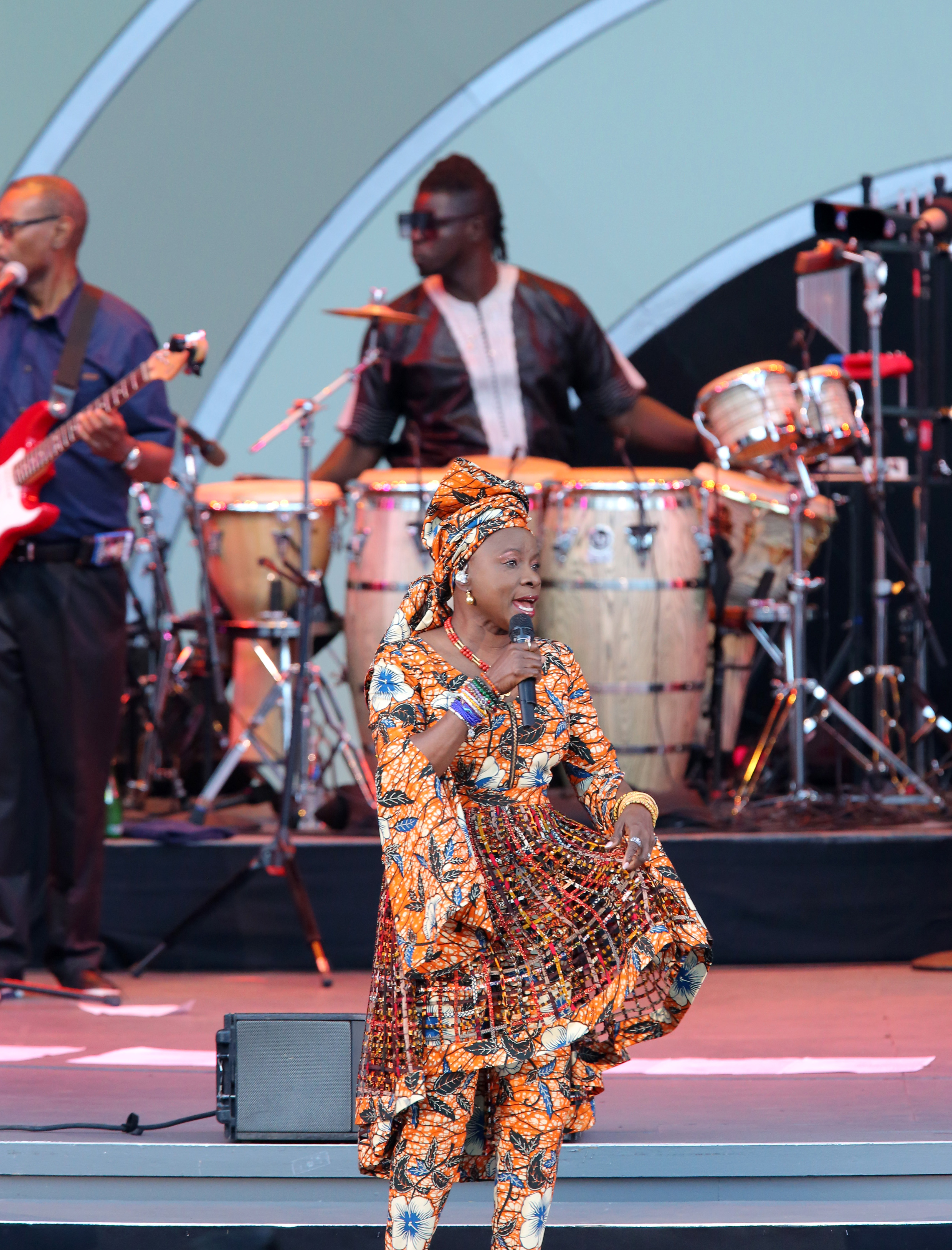 Jazz this day was also the always inventive trumpeter and film composer Terence Blanchard creating a distorted otherworldly brass section via his horn in collaboration with the E-Collective, balancing their fiery progressive fusion with the more accessible blues/gospel/funk vocals of Quiana Lynell. And jazz was a burning, crazily danceable rollercoaster ride to Africa for legendary Beninise-American vocal giant Angelique Kidjo’s exuberant celebration of her home continent and the Latin magic of Celia Cruz (as per her new tribute album Celia). Dressed to convey the eye (and ear) of the tigress, she engaged the crowd with wild chanting choruses and shouts and more bona fide audience participation than any act of the day. Another highlight was Bela Fleck and the Flecktones, whose boisterous and plucky, urbane yet delightfully dusty Americana inspired jazz fusion was driven by Fleck’s creative banjo sojourns and solos and the incredibly diverse musings of harmonica player and pianist Howard Levy.