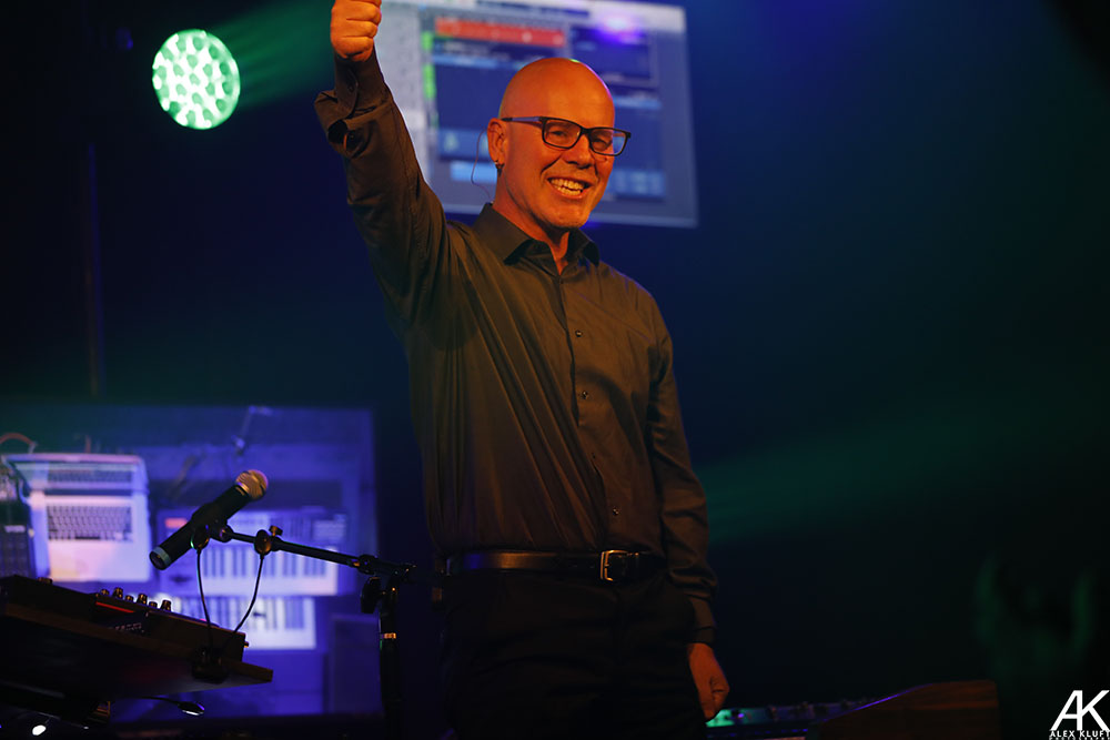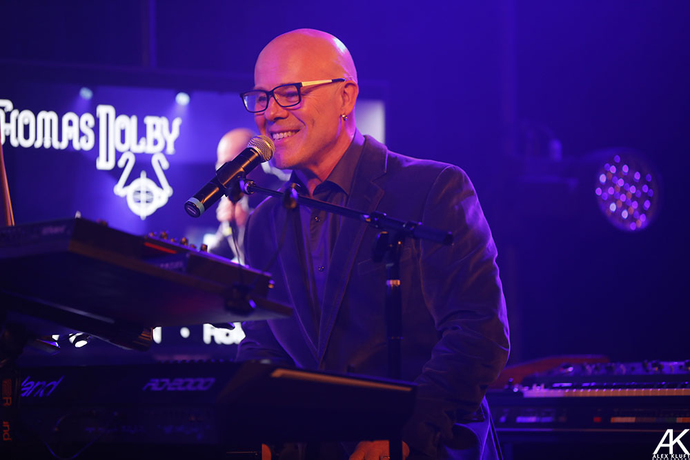 Last week in Los Angeles, CA there were several chances to see synth-pop legend Thomas Dolby between the Largo Theater and Microsoft Theater. On Thursday, July 26, Roland Hall of Fame inductee Thomas Dolby stopped at The Roland Artist Relation offices and studio in Bell, CA for a very exclusive performance which was live streamed. This performance revolving around the Roland Cloud included Dolby’s classics “Europa,” “One of Our Submarines,” “Hyperactive” and “She Blinded Me with Science.” Along with the songs, Dolby told the stories of how we wrote them and showed how builds a song up starting with a drum sampler then adding synths and vocals. For me my favorite part Dolby’s story about meeting the King of Pop himself, Michael Jackson and visiting the Jackson’s Estate in Encino which had the intimate audience there laughing. Following the performance, Dolby did a meet and greet and signed copies of Hyperactive and his book The Speed of Sound: Breaking the Barriers Between Music and Technology: A Memoir. To me, Dolby really is a fully functioning band as he can play an entire song with various instruments between a laptop, drum pad controller, and keyboard as well as sing.