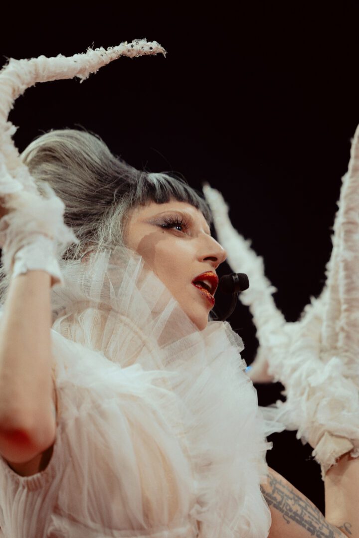 The set is split into four acts, plus a finale and an encore. Set one hammers home those "naughty and nice themes, named as it is "Of Velvet and Vice." First song is "Bloody Mary" from the Born This Way album, Gaga emerging atop a cylindrical cage like she's a figurine on a massive cake. There are strong Queen of Hearts (Alice in Wonderland) vibes about the star, continuing a gothic literary feel to the whole thing.