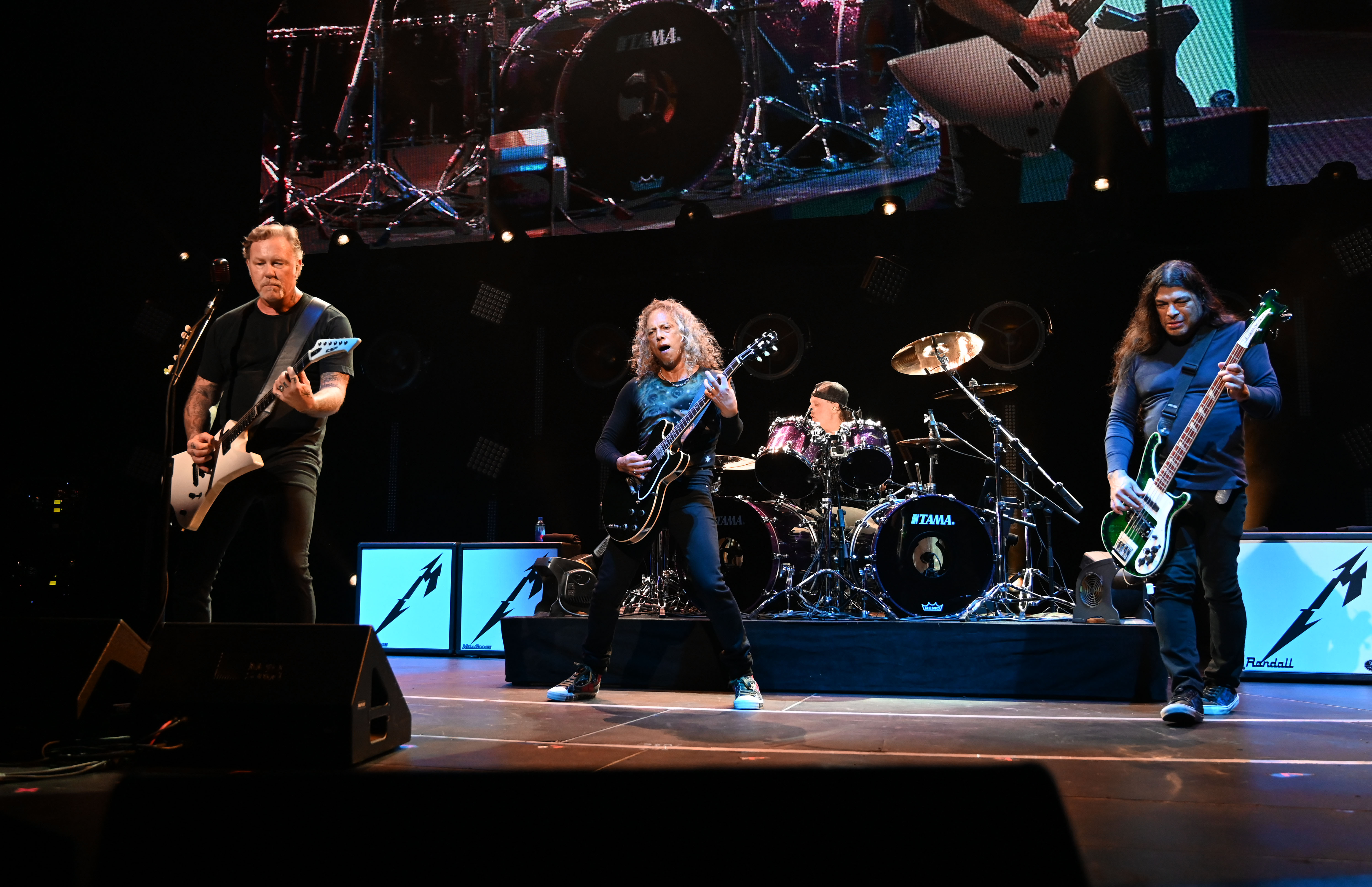 As the night began to hit the home stretch. Metallica’s James’s Hetfield, Lars Ulrich, Kirk Hammett, and Robert Trujillo rocked out to a medley of hits. The group's fast tempos, instrumentals and aggressive musicianship gave a little “kick” to songs like “All Your Lies”, “Master of Puppets,” “Head Injury” and “For Whom The Bells Toll.”.= Metallica definitely made heads bang and start a mosh pit.