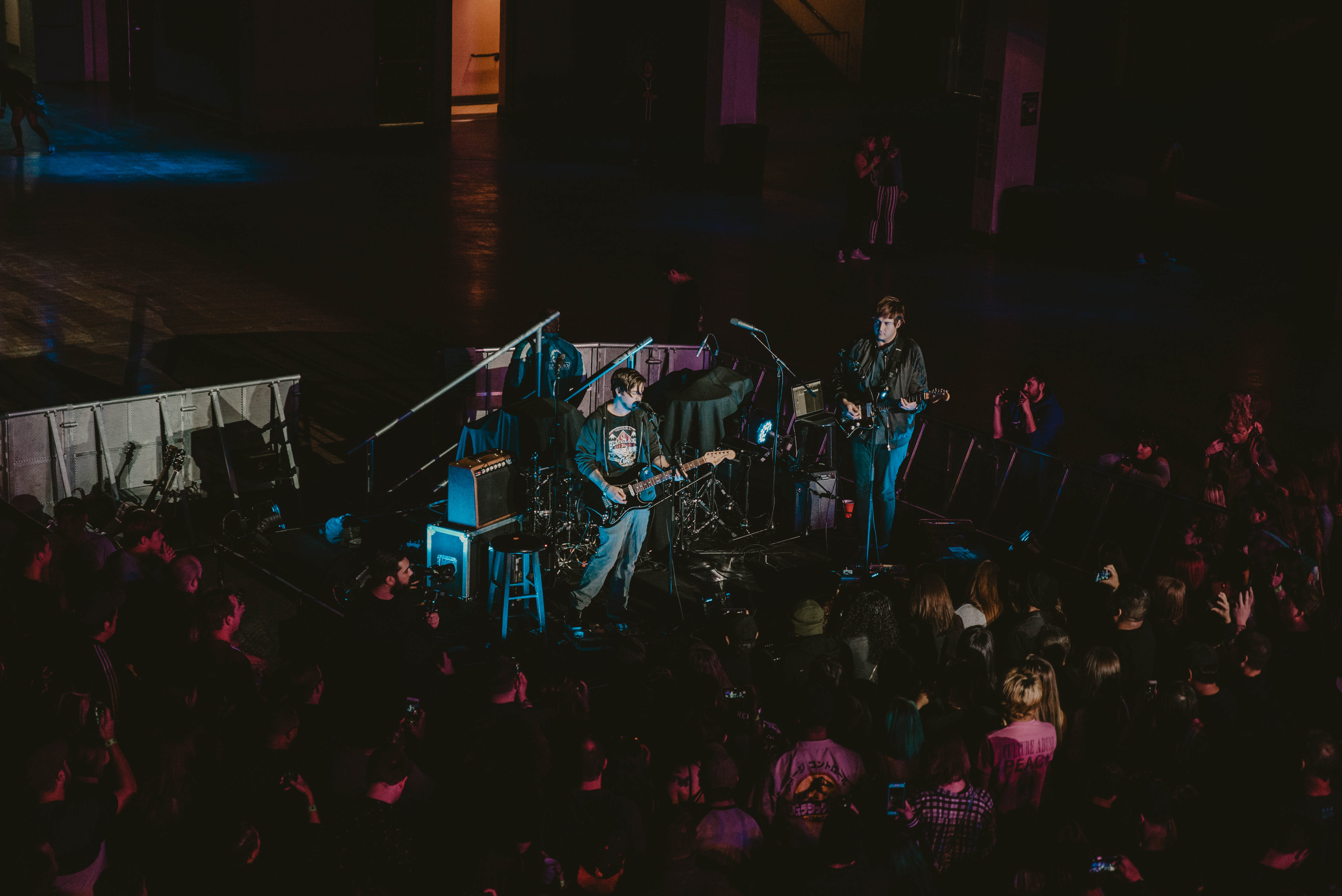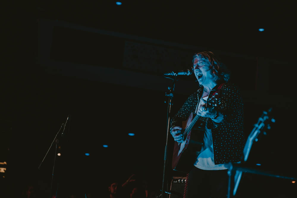 The auditorium housed two indoor stages and one outdoor stage for a continuous day of music. Wandering around the auditorium you are directed to what I dubbed as, ‘The Hallway of Black Tee Shirts’, also known as the merch booths. As you make your way along the array of different shades of black, you are bombarded with witty bold fronted tees, stating “Sad as Fuck” and “The Only Dates I Want Are Tour Dates”. Tucked in the back behind the myriad of tee shirts, was a small table set up with a DJ that attracted a few straggling dancers but ultimately seemed to get ignored for most of the day.