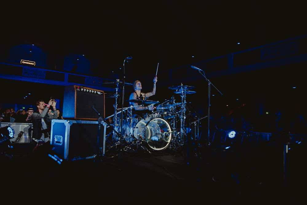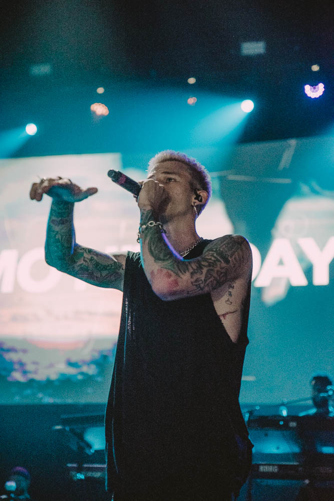 As the evening continued to build up and the beer lines continued to see a steady flow of patrons, Machine Gun Kelly hit the stage with a powerful bass filled performance. Sipping on a bottle of Jameson, he played several fan favorites before taking a moment to pay homage to Chester Bennington and Lil Peep. Struggling to remember the words to Blink 182’s “Adams Song”, he stopped the performance in the first verse stating, “this is the effects of alcohol”, and encouraged the crowd to help sing along. The second time around while still choppy, picked up speed towards the end of the song and the whole room sang along. Jumping around in his blue cowboy boots and matching leather jacket MGK was full of energy as he concluded his performance and his bottle of Jameson.