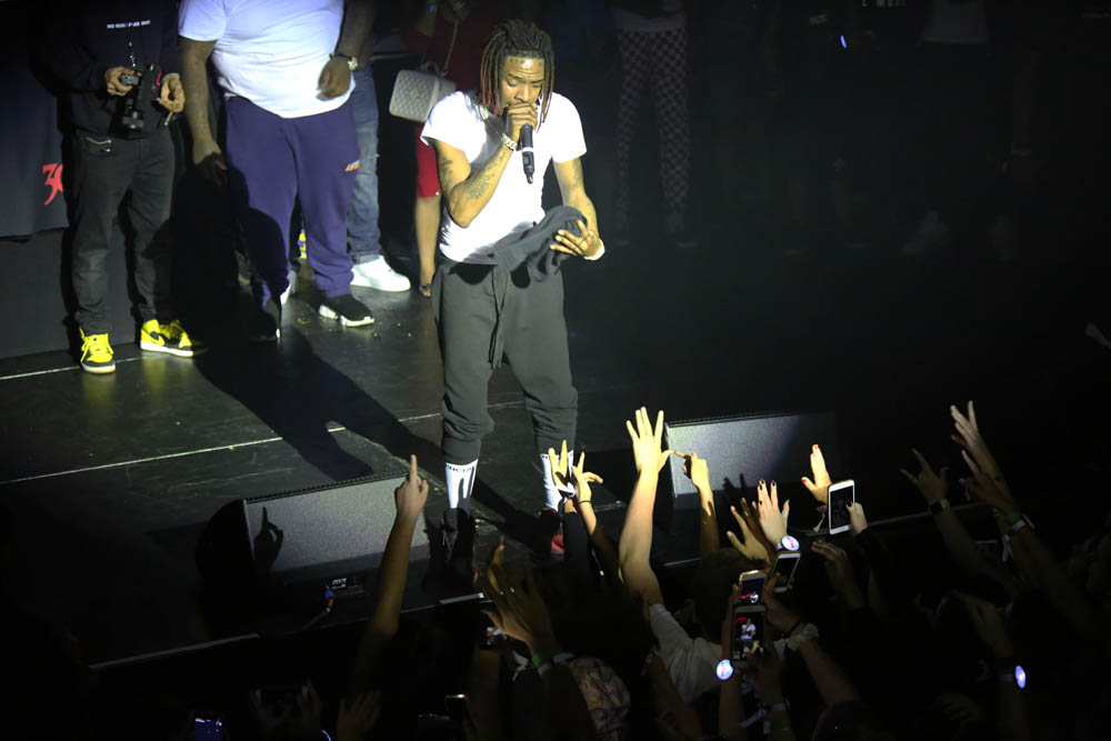 Rapper Fetty Wap stopped by Belasco Theater in DTLA for his FMF Tour as he performed in front of an overly enthused crowd comprised of mostly women. Rapping in front of a massive red glowing sign that read "Fetty Wap", Fetty delivered songs like "Trap Queen", "My Way," "679," "Again," "RGF Island" and "Jugg" among other hits from his catalog. Fetty worked the crowd with periodic interactions and kept those in attendance entertained for rest of the evening. Being in the rap game for only 4 years, Fetty has already accrued a large following with contemporary hits to his name. Photos courtesy of Xxposure Photography.