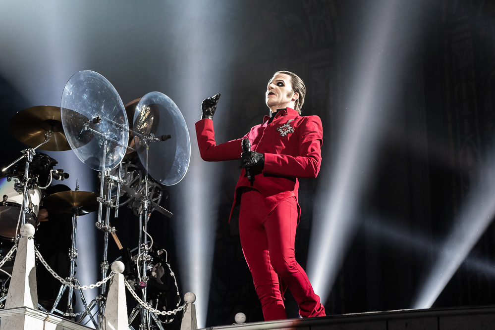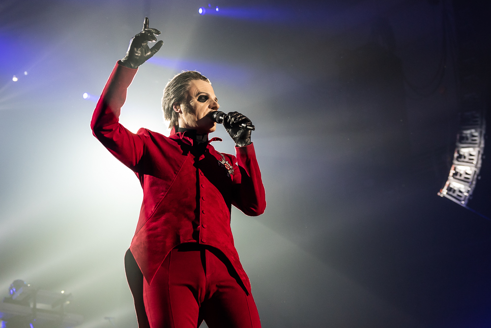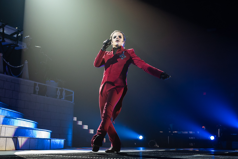 Ghost’s Cardinal Copia charismatically struts across the stage