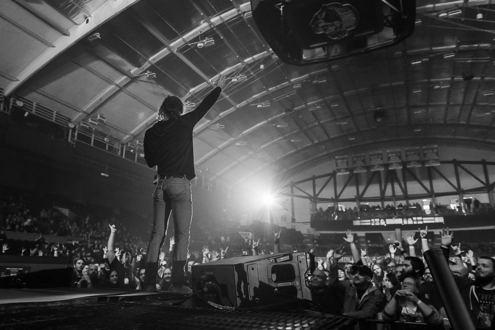 Nothing More’s Jonny Hawkins firing up the crowd in Syracuse
