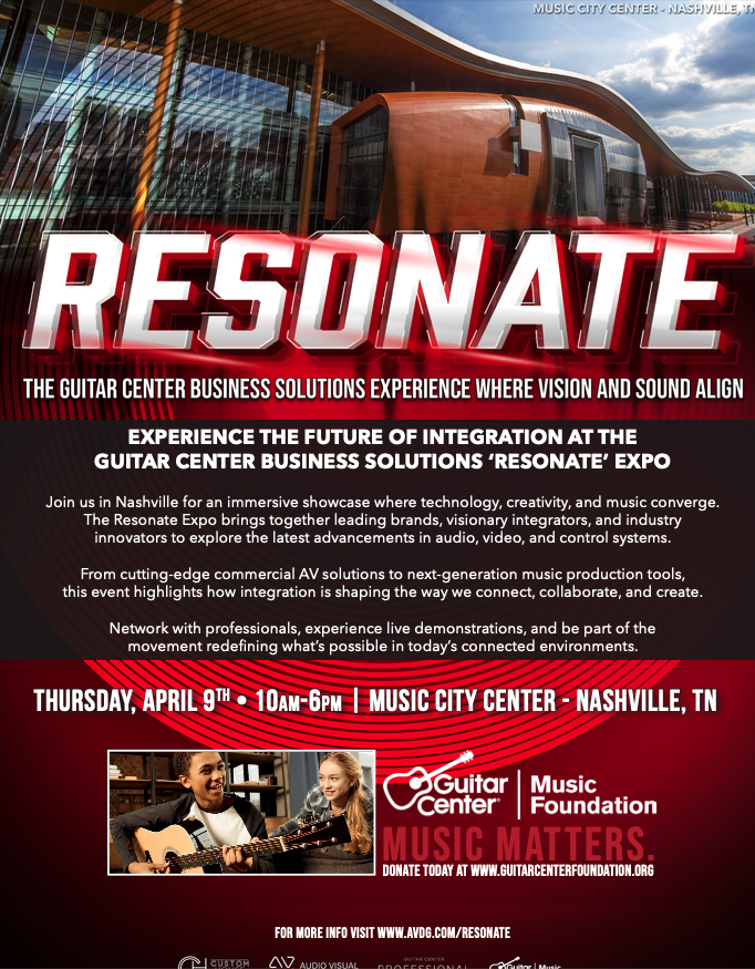 This week, Guitar Center Business Solutions announced the inaugural Resonate, "the company’s first dedicated industry expo, launching in Nashville to showcase the future of integrated audio, video and control technology, according to a company statement.