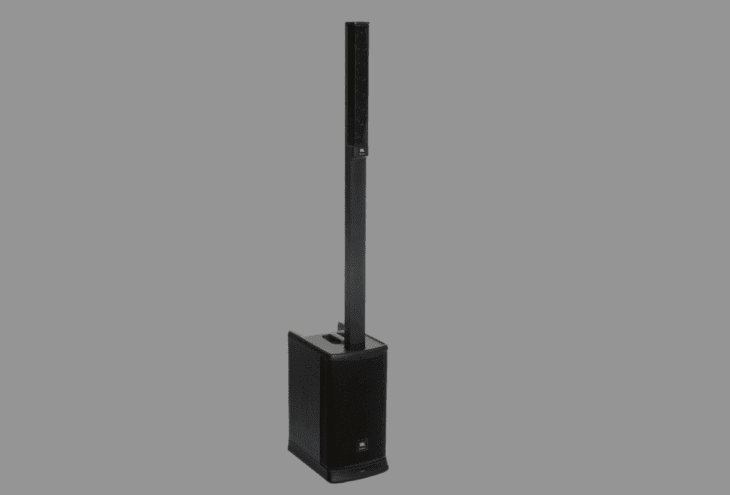 JBL’s EON ONE MK2 is a fully self-contained column PA system ideal for street performers, café artists, or anyone needing battery power. It features a 10-inch woofer and eight two-inch tweeters in a C-shaped array for 140° x 30° dispersion. The system can output up to 123 dB SPL on AC power (119 dB on battery), which is plenty for most solo gigs.