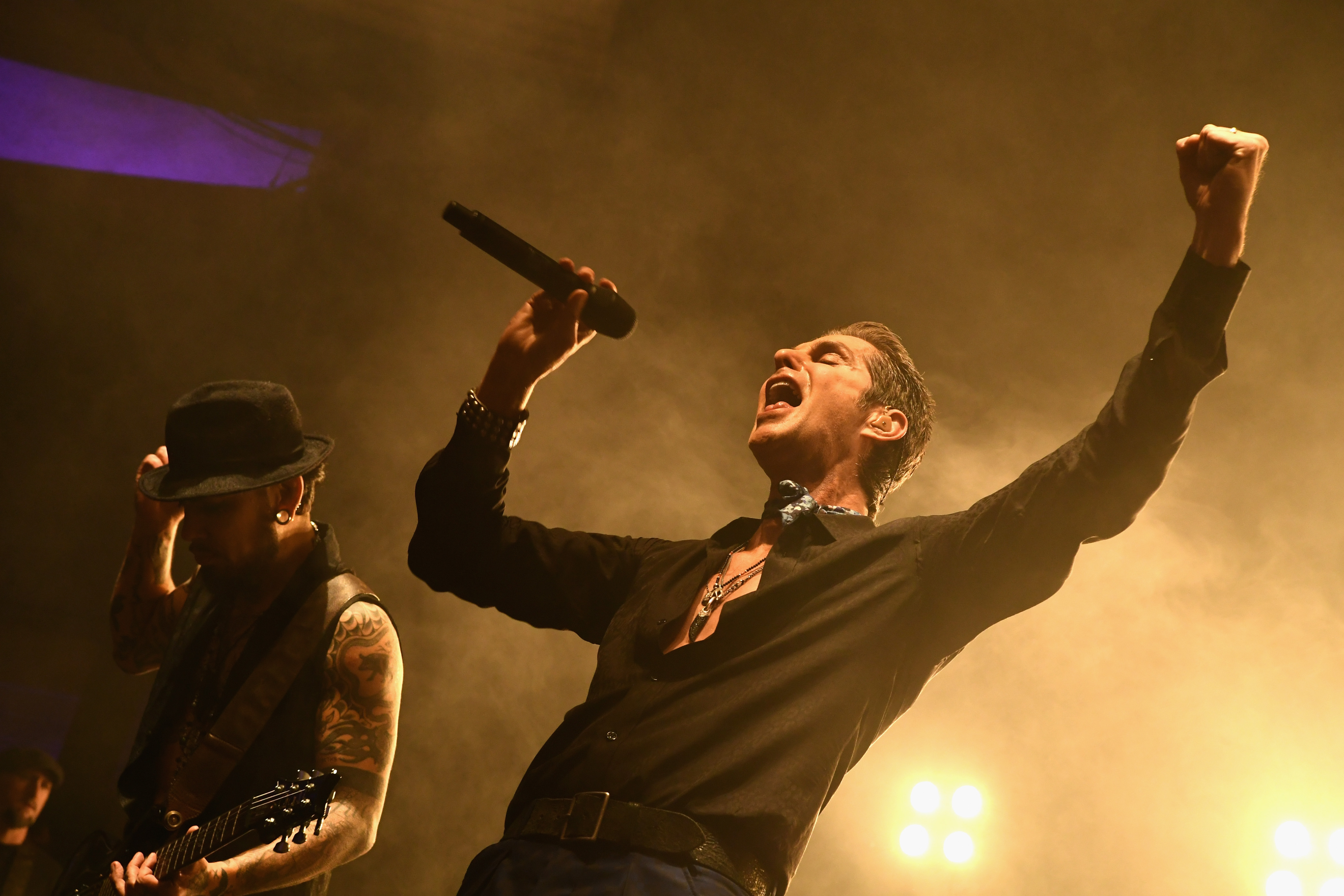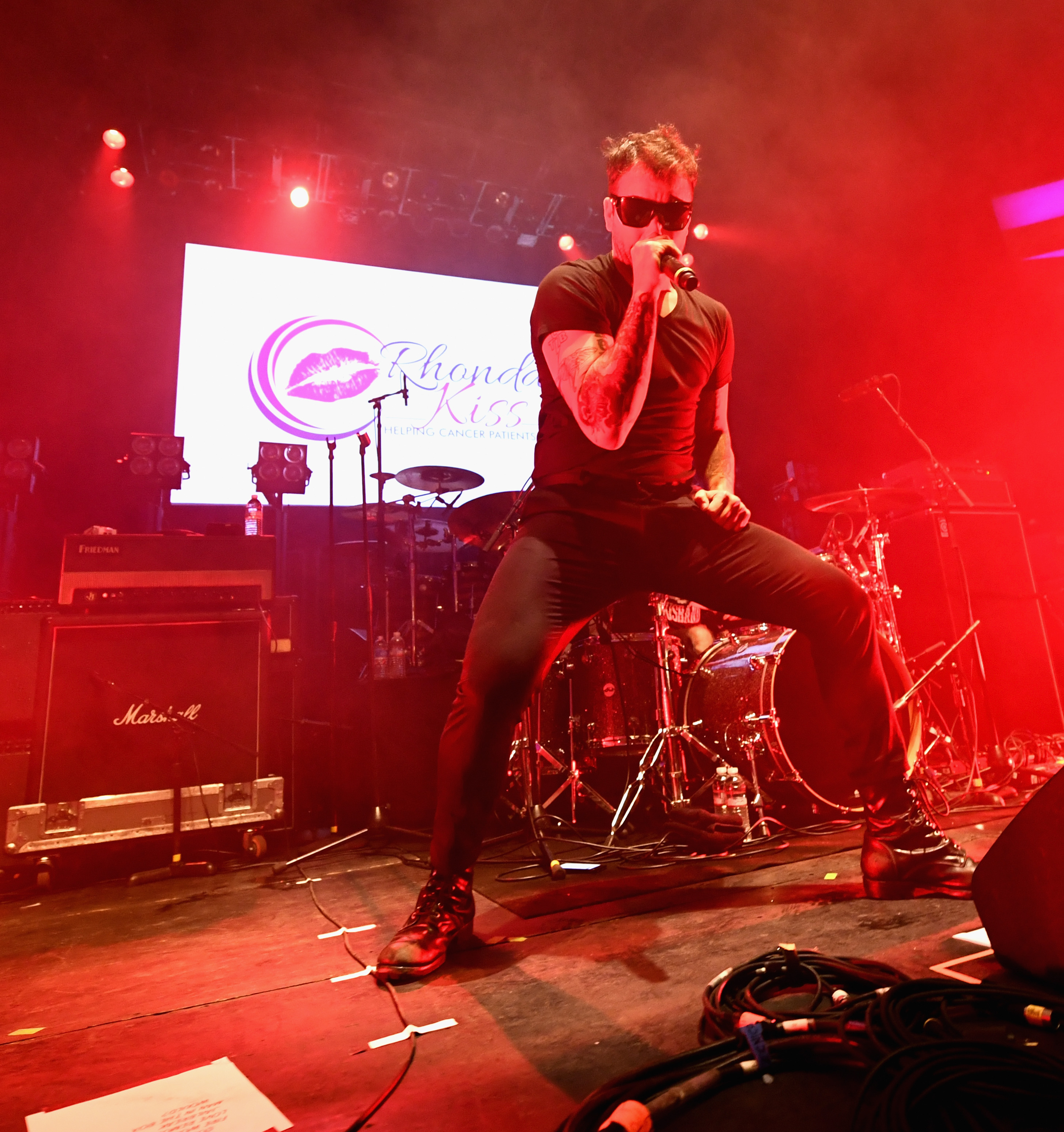 Rhonda's Kiss, an organization that helps cancer patients in need, put on their 3rd annual all-star benefit concert at the Palladium in Hollywood, CA. The Hellcat Saints opened up the show as a collective with Jerry Cantrell from Alice in Chains, Josh Freese from Devo and NIN, Billy Duffy from The Cult, Dave Kushner from Velvet Revolver, Franky Perez from Apocalyptica and Scott Shriner from Weezer. Their performance was followed up and closed by the legendary Jane's Addiction. In an intimate setting with black lights illuminating from the ceiling and the stage, both bands were electrifying in front of an enthusiastic crowd.