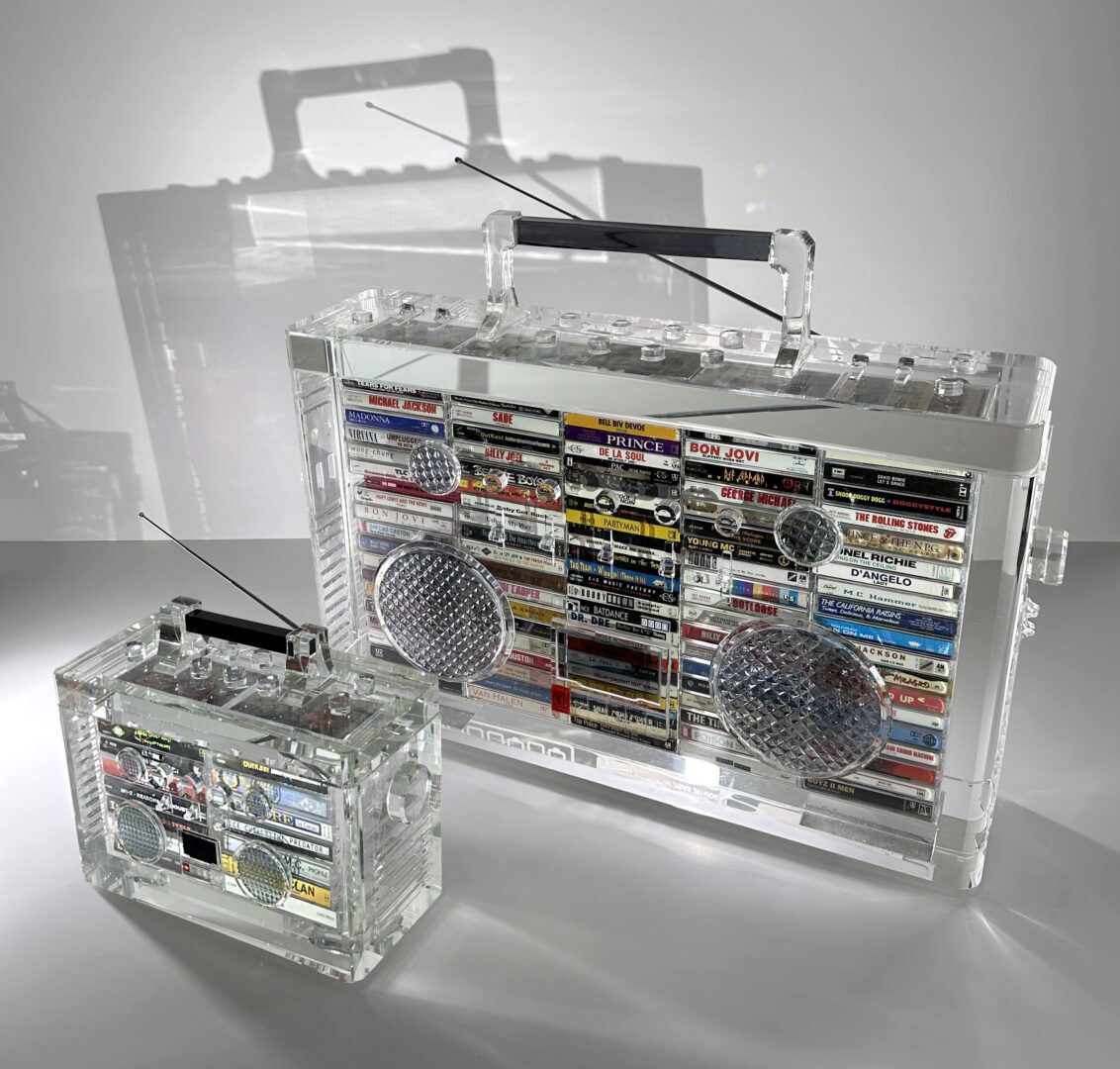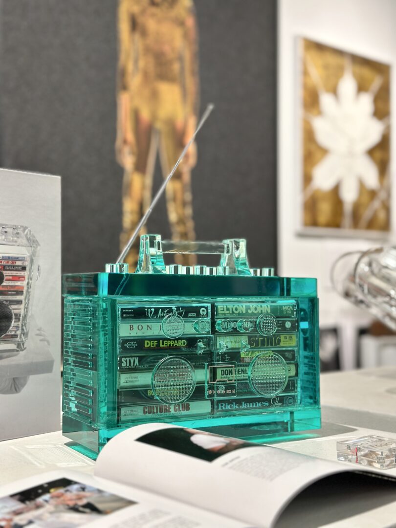 David Schwartz approaches sculpture as a form of listening. His translucent boomboxes operate like temporal, Proustian portals where sound and memory dance in the light. In Minneapolis he was a young musician studying art; but he left school when he ended up in Prince’s world, recording at Paisley Park and performing with him. While professionally he went on to spend two decades designing visuals for outfits from Marvel to Netflix and Rock the Bells, those heady years at Paisley Park still ring in everything he does—including and especially his latest project, Music as Medication, debuting at LVMH The Studio Miami during Art Basel Week 2025.