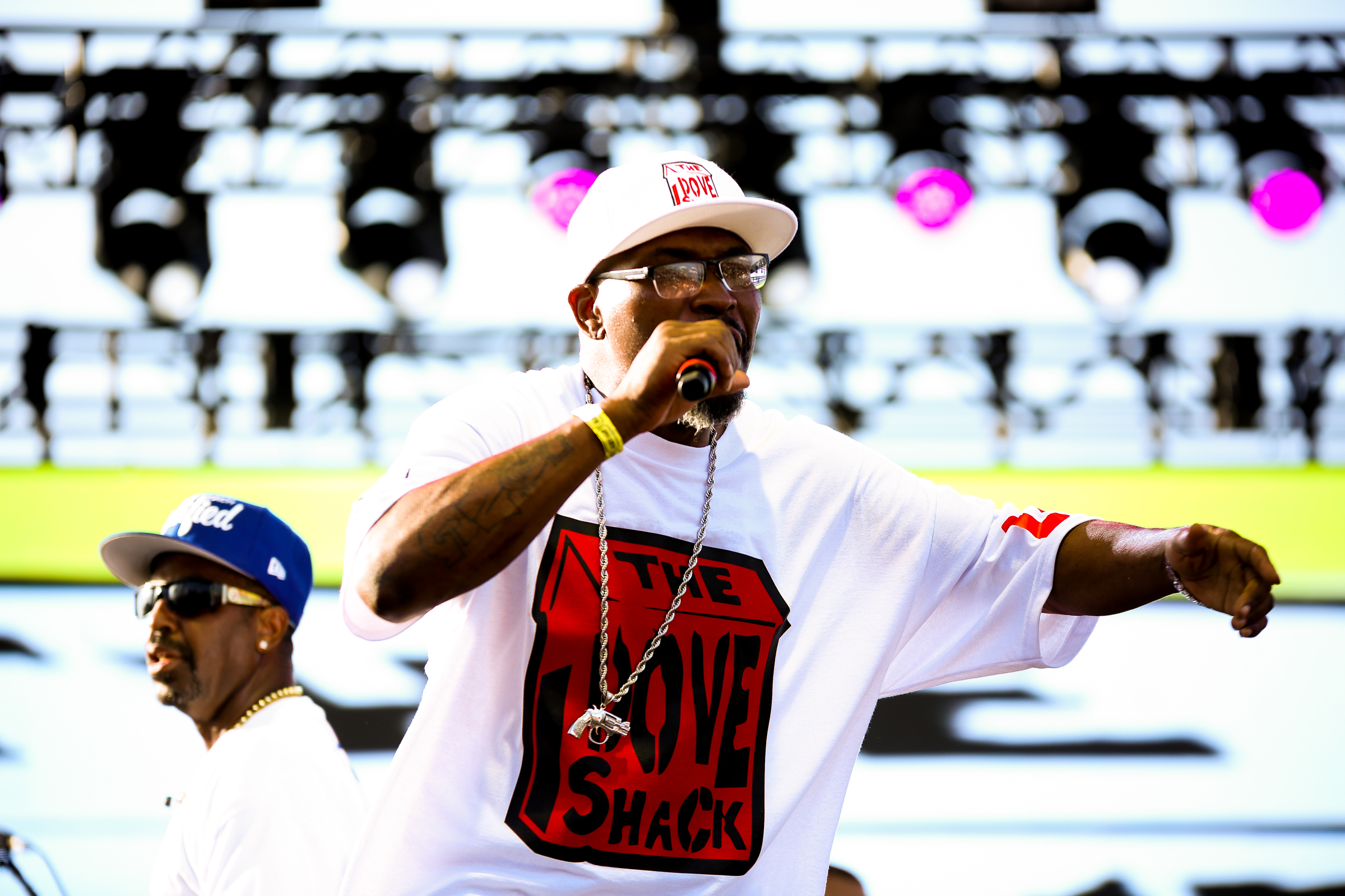 Pomona's very own Suga Free hit the stage being as loud as he could be playing tracks such as “If you stay ready” and “I rather give you my Bitch” representing the city of Pomona to the fullest. And you know whenever Suga Free hits the stage, he's always pairing up with his good friend Compton rapper DJ Quik. DJ Quik gave a great performance and even bringing out his talented son David Blake jr on stage to perform some of his songs.