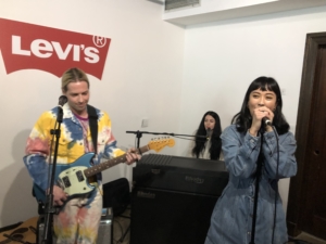 The two original members of The Naked And Famous played a live set in the small living room area at Levi’s Haus of Strauss. Their show featured three songs: Bury Us, Sunseeker and Young Blood. During this performance they were accompanied by Luna Shadows. A young pop singer responsible for co-writing and co-producing their fourth LP. The collaborative effort with Luna Shadows marked the first time that The Naked And Famous worked with a producer outside of their two-piece band for the making of a studio album. Not only did this move add a new perspective to their songs, it also helped them highlight the significant contributions that have been made by female musicians during a time when there haven’t been a lot of women singers fronting rock bands.